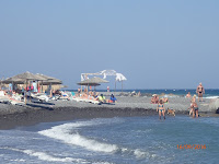 Dni pomiędzy kolejnymi wyprawami w głąb wyspy spędzaliśmy w Kamari, najczęściej na kamienistej plaży odpoczywając, pływając i snurkując. Woda jednak nie zawsze jest tak przejrzysta jak poniżej. Generalnie taki stan zdarzał się raczej rzadko. Częściej jednak woda jest dość mętna, a prądy nanoszą drobne zanieczyszczenia powodujące brak przejrzystości. Dno usłane jest czarnymi kamieniami wulkanicznymi, które dodatkowo potęgują mroczną barwę wody. Taka jednak jest specyfika tej wyspy. W końcu to wyspa na wulkanie.